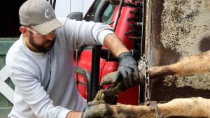 The hoof man comes to town and he trims their feet, that costs $20/per cow. Twice a year, $40 bucks on foot care.